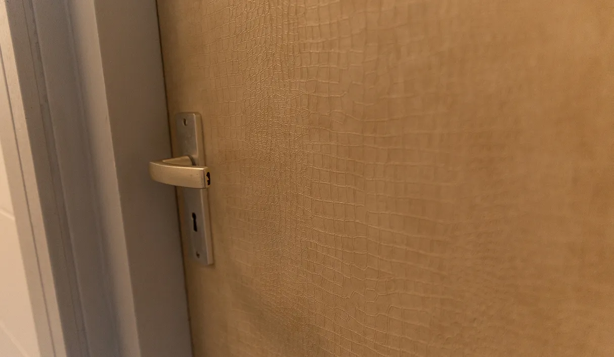 Voor de binnendeuren hebben we gekozen voor Crocodile Leather Beige, een witte krokodillenleer-interieurfolie. Deze folie bracht niet alleen een luxe gevoel met zich mee, maar creëerde ook een uniek en verfijnd accent voor de deuren, waardoor ze naadloos opgingen in het elegante interieur van de winkel.