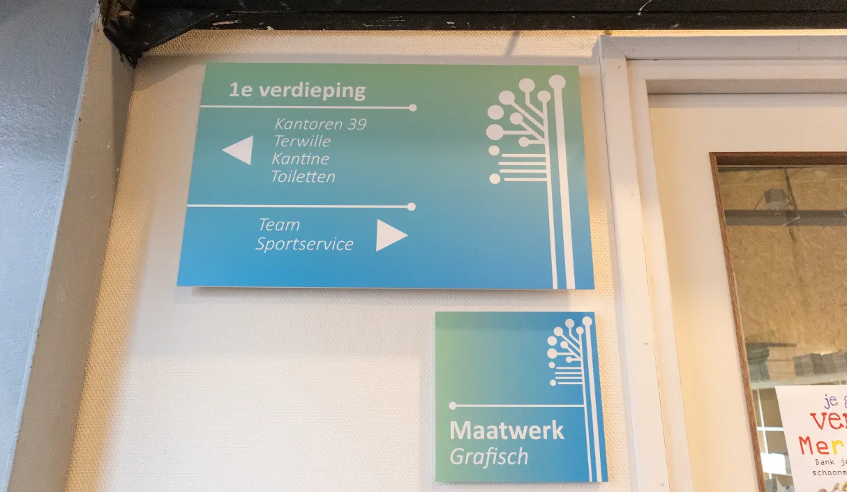 Alles is op maat gemaakt en afgestemd op de ruimte. Zo klopt niet alleen de routing, maar ook de uitstraling. Het resultaat is een overzichtelijk en herkenbaar systeem dat bezoekers intuïtief door het gebouw leidt.