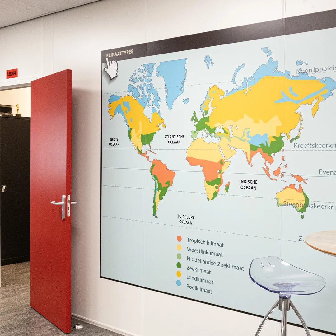 Daarnaast hebben we ervoor gezorgd dat de visuals moderne elementen bevatten, waardoor ze niet alleen educatief zijn, maar ook visueel aantrekkelijk en relevant voor de hedendaagse leerlingen. Door gebruik te maken van actuele ontwerpen en technologieën, hebben we een omgeving gecreëerd die zowel inspirerend als uitnodigend is, waardoor de leerlingen zich meer verbonden voelen met de lesstof.