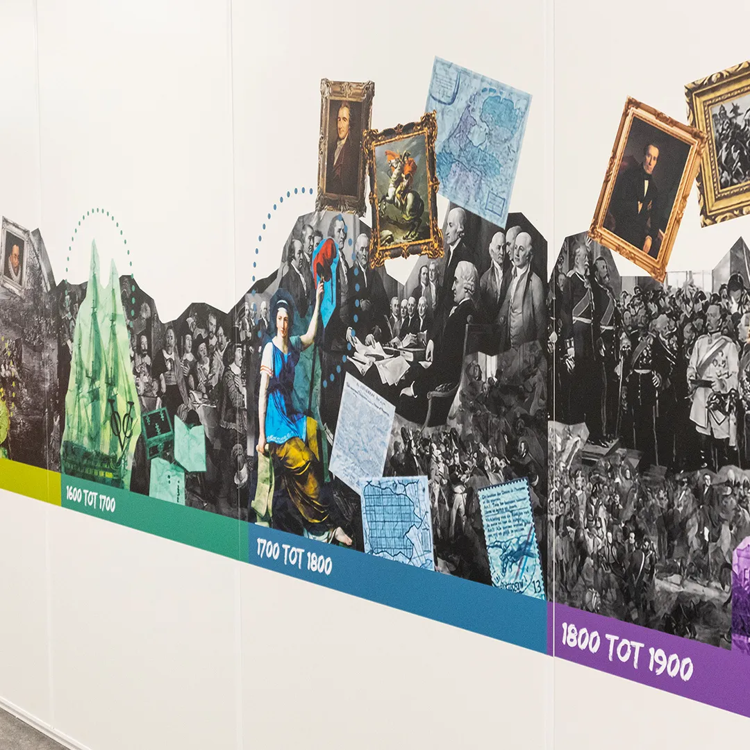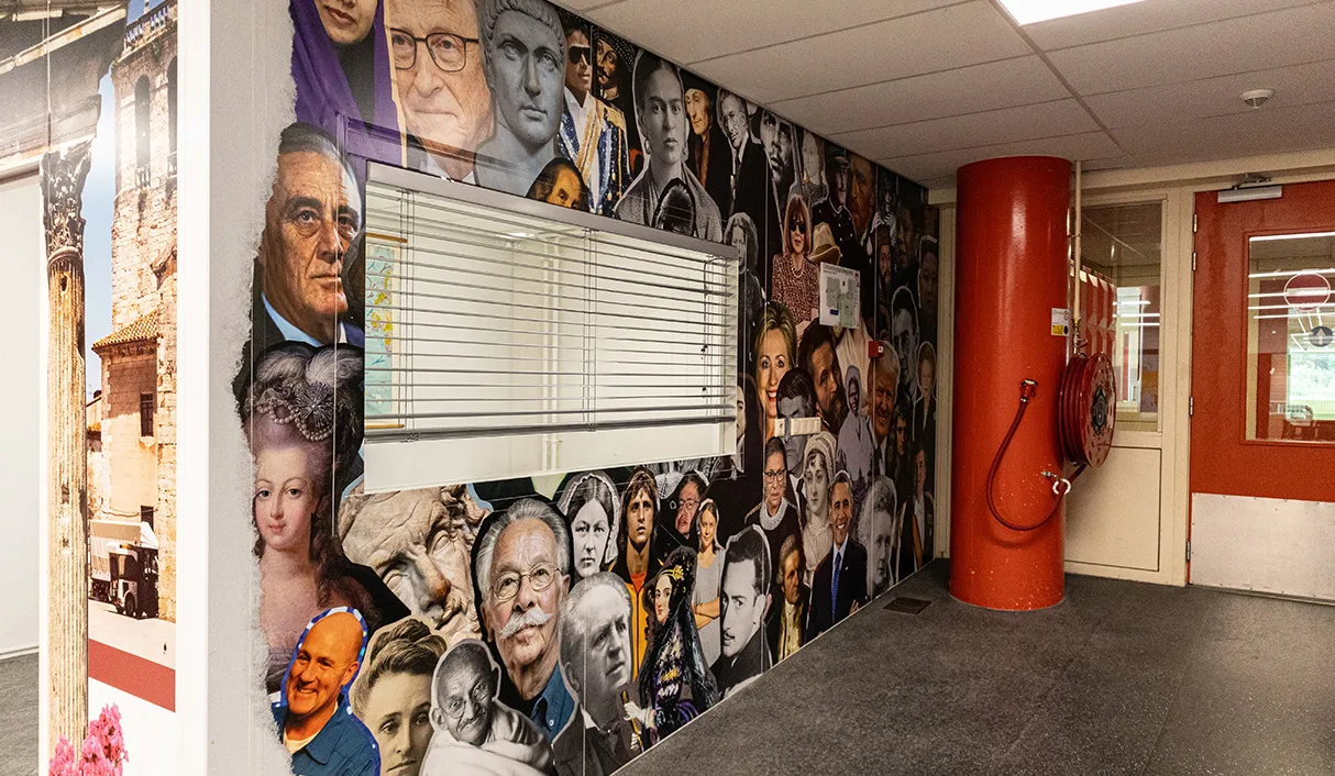 De wanden zijn geïnspireerd door de collage art stijl, een kunstvorm die bekend staat om zijn dynamische en veelzijdige karakter. Door verschillende elementen en beelden te combineren, hebben we een rijke en levendige visuele ervaring gecreëerd. Deze stijl leent zich uitstekend voor het verbeelden van de diverse onderwerpen, waardoor elke wand een uniek verhaal vertelt dat de leerstof tot leven brengt.