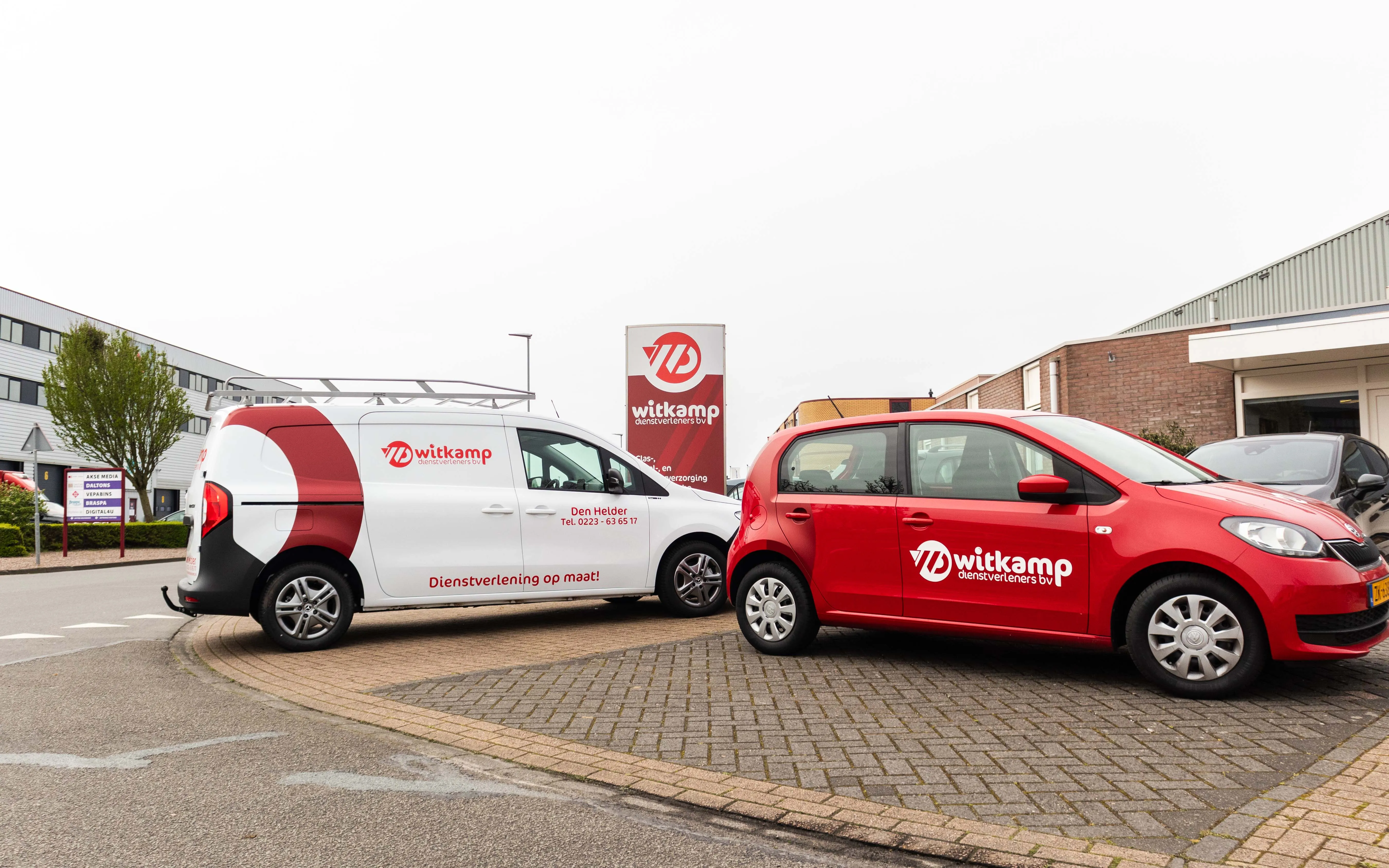 Van het ontwerpen en aanbrengen van opvallende autowraps tot het nauwkeurig beletteren van diverse voertuigen, hebben we elke stap van het proces met grote zorg en toewijding doorlopen. Daarnaast hebben we zuilen bekleden met de branding van Witkamp, waardoor hun aanwezigheid op verschillende locaties nog prominenter wordt.